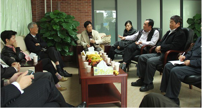 图1 我院刘荣海董事长向来访客人介绍学院发展情况