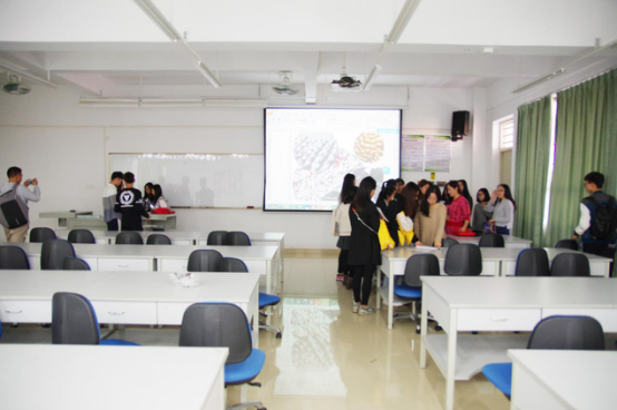 我校艺术设计系教师办公室副主任潘倩莹、实验室管理员胡建芳及30多名艺术设计系学生到场聆听。
