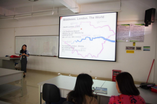 12月7日,英国密德萨斯大学(Middlesex University,以下简称密大)项目宣讲会在我校东莞校区顺利举行。本次宣讲会特邀密大香港办事处代表丁竹颖老师、深圳办公室代表刘莉老师担任讲座主讲,目的是推动学院项目的开展。