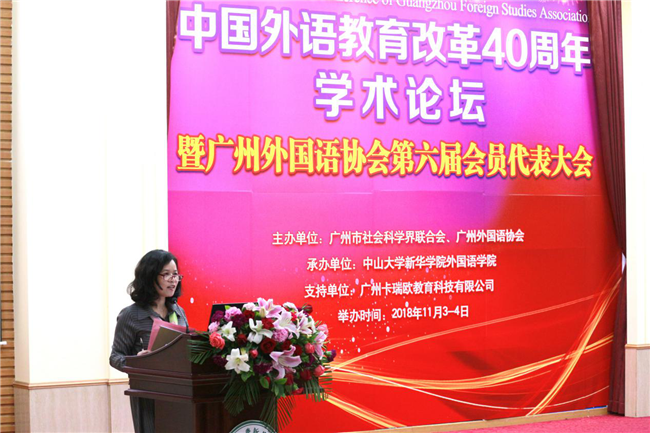 广州外国语协会会长、广东外语外贸大学教授、博导欧阳护华教授作主旨演讲
