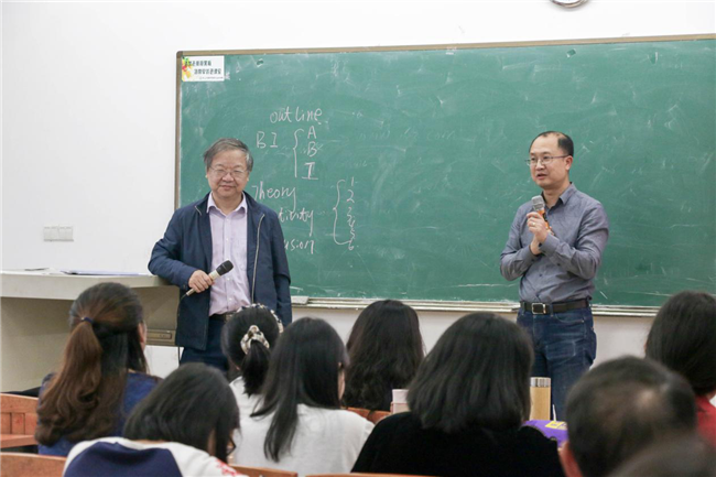 中山大学外语学院院长、博导、中山大学新华学院外国语学院学科带头人王东风教授(左)、美国加利福尼亚大学黄运特教授(右)精彩开讲