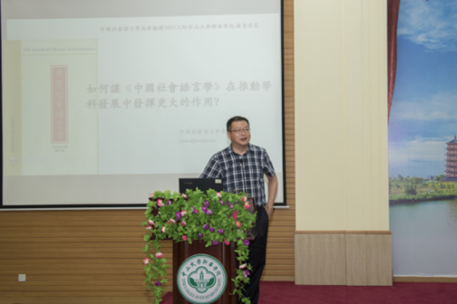 20号上午,论坛特邀中国社会语言学副会长、澳门大学教授邵朝阳作“《中国社会语言学》杂志的电子化构想”的专题报告。本场报告由中国社会语言学会理事、中山大学外国语学院丁建新教授主持。