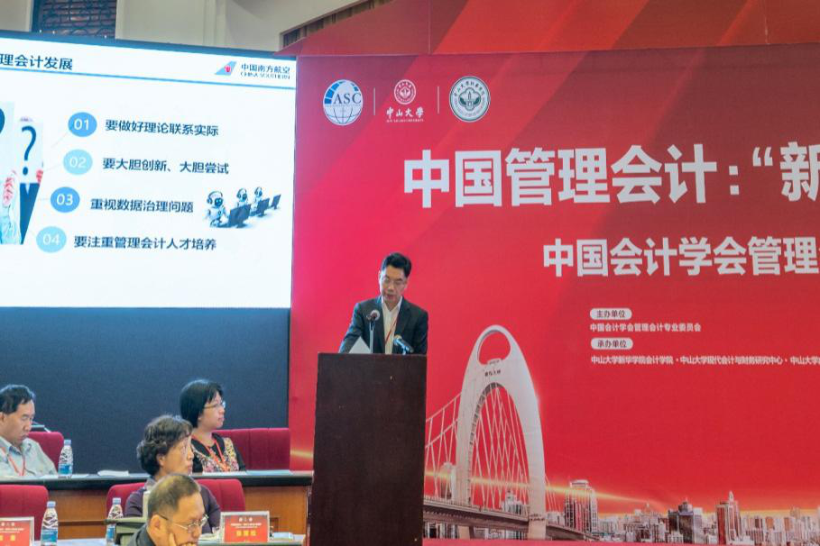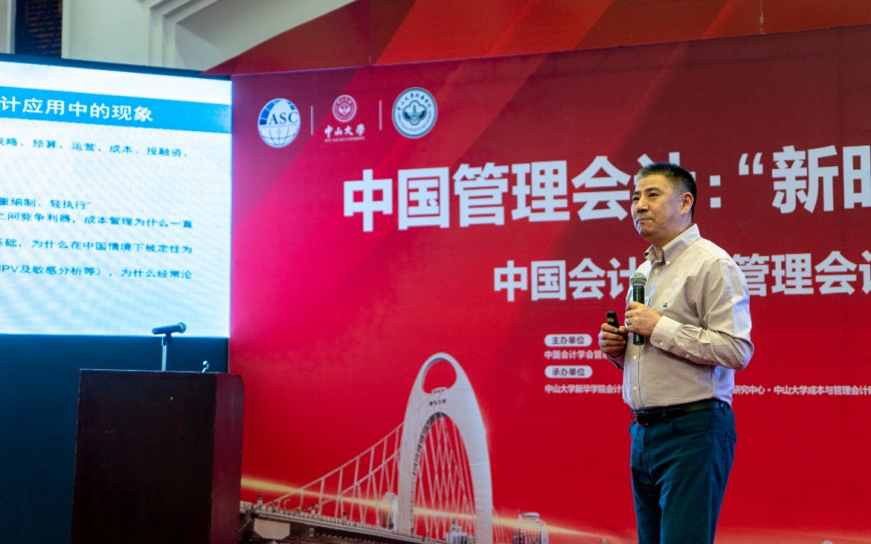 中山大学新华学院会计学院院长、中山大学管理学院教授、博士生导师、中山大学成本与管理会计研究中心主任刘运国主持开幕式;中国会计学会管理会计专业委员会副主任委员、清华大学于增彪教授主持大会闭幕式。中山大学党委常委、副校长杨清华、中山大学新华学院校长王庭槐、中国南方电网有限责任公司党组成员、总会计师文利民代表驻穗央企在开幕式上分别致辞。