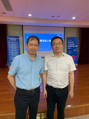 我校艺术设计与传媒学院院长、原南方电视台党委书记兼台长蔡照波教授(左)和中山大学传播与设计学院院长、广州直播电商智库专家张志安教授(右)参会合影留念