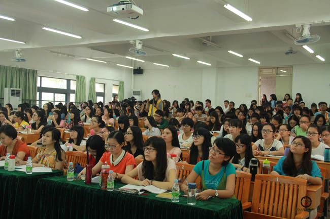 在讲解时,李副院长将《秋声赋》进行分段讲解,详细分析了每段所体现的内容和深具表现力的用词。他还将课题引申至“为什么要学习古文?”、“如何学习古文?”。他认为,学习古文的意义可以提高写作技巧。古文中,文章巧妙的构思,散、骈、韵相间的句法构造,简洁明了的短句子、短段落、短文章以及适当的语言变异都使得文章更加具有可读性。同时,他提到,在学古文的过程中,需要更多地去了解古文的行文规律,从而总结出自己的规律;培养质疑精神,因为古人多为“偏于义理,浅识古今”、“缺少循环,囿于常例”,故文章存在一定的局限性;了解古代文化常识,要做到“知常识变,变中求常”。如此,同学们才能够在阅读古文中培养出良好的阅读能力。