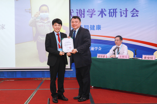 单元主持人游一龙(右)为主讲嘉宾黄俊铭(左)颁发致谢函