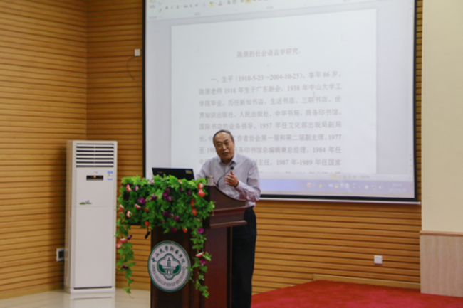 20号上午,论坛特邀教育部语言文字应用研究所研究员,中国社会科学院研究生院教授苏金智教授作《陈原先生的社会语言研究》专题报告。本场报告是由中国社会语言学会秘书长,教育部语言文字运用研究所研究员郭龙生教授主持。