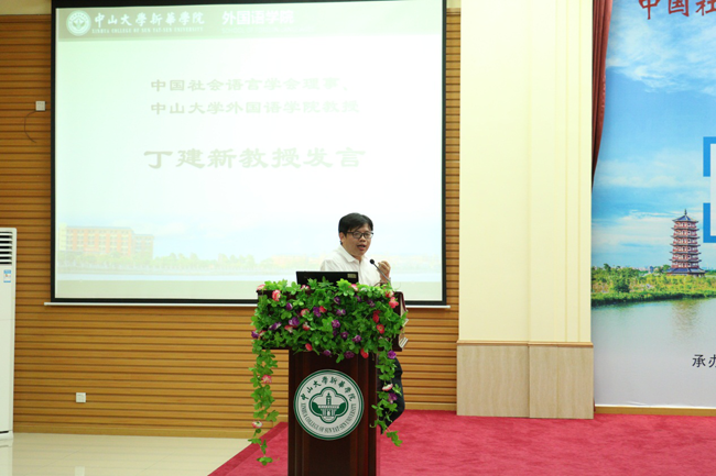 中山大学外国语学院博导、中山大学语言研究所所长丁建新教授作题为“作为社会符号的反语言:边缘话语与社会”的学术报告