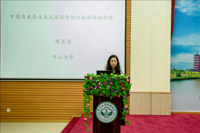 中山大学新华学院外国语学院执行院长廖益清教授作题为“全球本土化语境中中国自我东方主义国家身份之话语构建”的学术报告