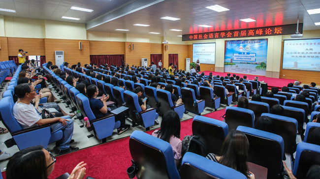 5月20日,由中国社会语言学会主办、中山大学新华学院外国语学院承办的中国社会语言学会首届高峰论坛在我校东莞校区举行。来自教育部语言文字应用研究所、中国社会科学院、中山大学、澳门大学、暨南大学、吉林大学、广东外语外贸大学、天津外国语大学、中山大学新华学院等多所高校及社会语言学研究机构的近20位知名专家学者齐聚一堂,围绕“社会语言学不同研究传统的相互借鉴与协同创新”主题展开专题研讨与学术交流,旨在积极响应“一带一路”倡议,推动社会语言学跨学科、跨领域、跨研究传统的融合发展与学术创新。
