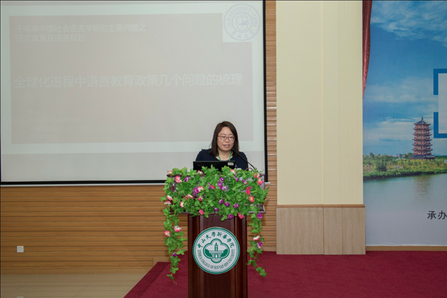 吉林大学公共外语教育学院院长潘海英教授委托董晓宇老师代为作题为“10年来中国社会语言学研究主要问题综述”的学术报告