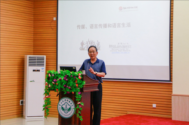暨南大学博导、海外华语研究中心主任郭熙教授作题为“传媒、语言传播和语言生活”的学术报告