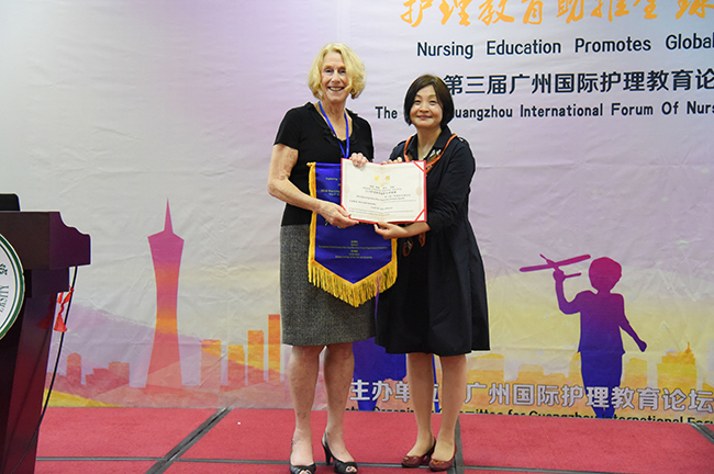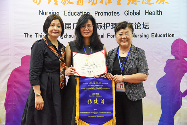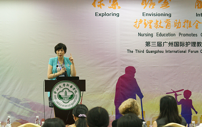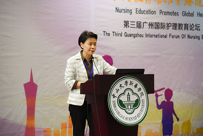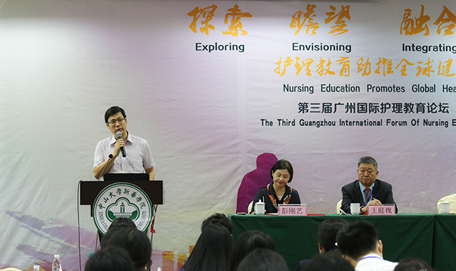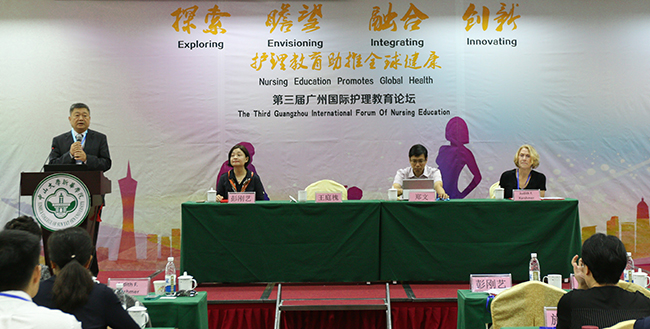 本届论坛以“探索、瞻望、融合、创新”为主题,在实践中力求护理教育助推全球健康,旨在打造高端国际交流平台,积极促进中国护理与国际接轨,有力提升护理学科水平,努力促进人类健康发展。特邀广东省卫生厅医政处副处长、暨南大学医学院护理研究生教指委副主任彭刚艺,大会主席、美国高校护理教育委员会(CCNE)主席、旧金山大学护理学院院长Prof.Judith F. Karshmer,中山大学附属第一医院护理部主任,中华护理学会副理事长成守珍教授,美国东华医院首席运营总监张建清教授,佛山市第一人民医院护理部张莉主任,和睦家医疗沈晓雁副总裁,中山大学新华学院医学系学科带头人Prof.Susan H. Neidlinger等护理教育、护理管理、临床护理方面的专家学者与会,并带来7场精彩学术报告,同与会嘉宾围绕“医疗改革:护理的角色是什么?居家护理对护理教育和实践的挑战,危重症护理进展及人文关怀,建设基于价值的优质护理服务体系,护士主导多专科协同,管理模式助推术后患者早期康复管理实践,如何成为国际化护士:机遇和挑战。”等主要内容展开研讨与交流,分享其学术研究成果和护理教育经验。