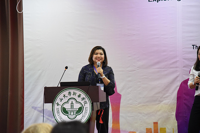单元主持人张建清(右)、张美芬(左)为主讲嘉宾Chanell C. Concepcion(中)颁发聘书和锦旗