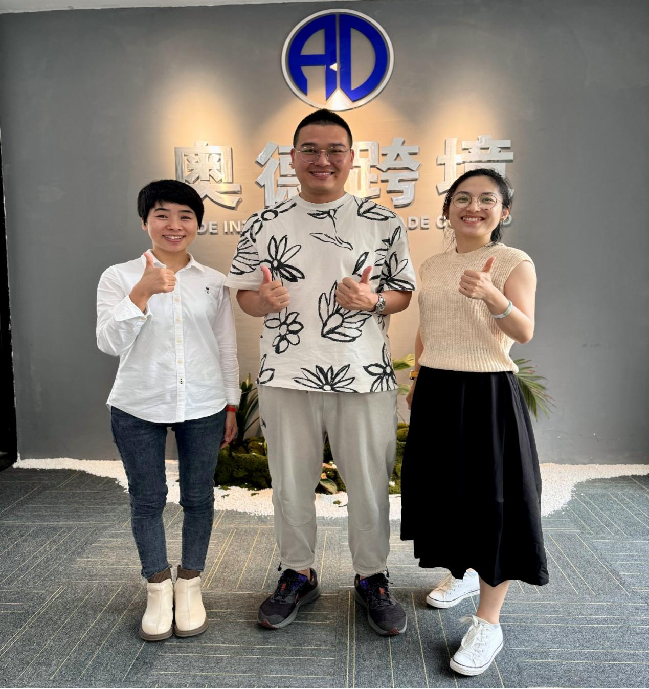 经济与贸易学院邵咪咪副教授(右)、苏美玉老师(左)与奥德跨境CEO廖总(中)合影