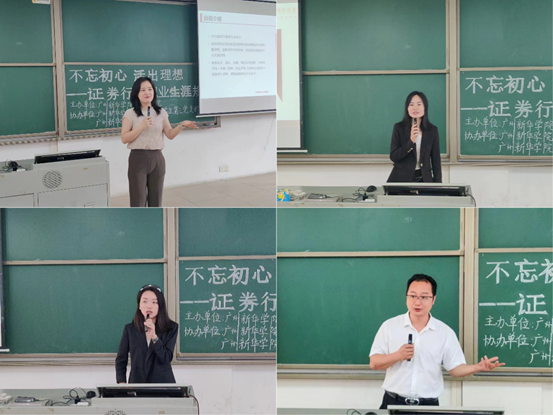 学院邀请2016届会计学院优秀毕业生邱思敏校友、证券财富顾问白莲枝女士、证券合规专员申米娜女士、资深客户经理廖淑武先生担任主讲嘉宾。会计学院党总支书记李安兰、党总支副书记邓楚云,学校校友会梁婉静以及会计学院师生参加了此次讲坛。本次讲坛由会计学院专任教师马振亚主持。