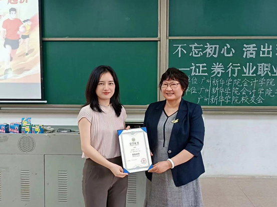 随后,李安兰为优秀校友邱思敏颁发suncitygroup太阳集团学子讲坛荣誉讲师证书。