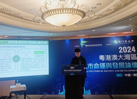 5月18日,suncitygroup太阳集团法学院教师易思与2022级法学专业刘晨浩同学,应国际旅游与区域发展学会邀请在澳门举办的2024年粤港澳大湾区城市命运与发展论坛上发言。