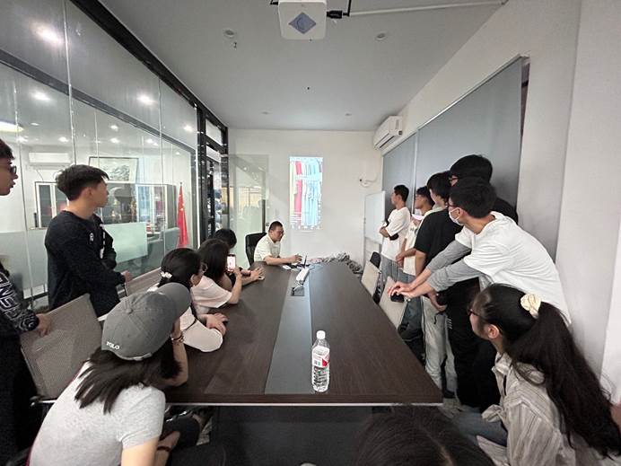 活动中,张才华、蓝舟琳与奥德跨境公司CEO廖总进行了深入的对话交流,共同探讨产学研深度融合的创新路径,为校企开展拓宽实习就业合作、共建实践育人基地奠定基础。