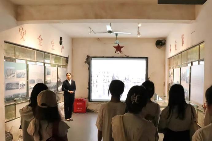 同学们认真聆听讲解员讲解