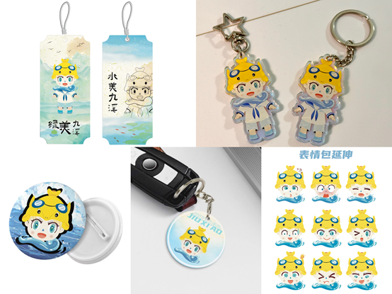 活动初期,为迎合广大青年群体的审美和喜好,团队匠心设计了IP形象“溪溪”作为九溪澳村的文化载体。活泼可爱的IP形象,融合了地域文化和自然元素,打造了独具地方特色的文化符号。随着活动展开,实践队创新对九溪澳表达情感的方式,围绕IP形象设计了一系列衍生周边与趣味表情包,为九溪澳“文旅渔”创新融合发展路径的宣传开辟了独特的宣传窗口。