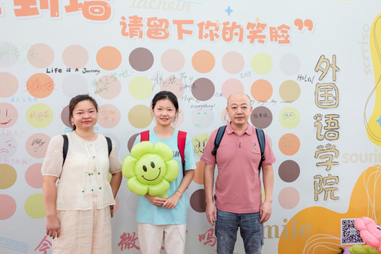 为营造温馨的迎新氛围,外国语学院在迎新现场特别设置了“笑脸墙”展板,邀请新生们以多种形式留下笑脸与祝福。结合学院开设的英语、西班牙语、葡萄牙语、日语、法语、德语等语种,展板上印有不同语言的“笑容”一词,希望新生们以积极、乐观的心态迎接大学生活的新篇章。