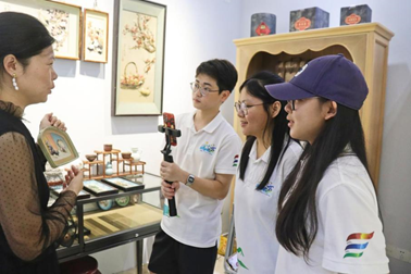 雕情贝艺突击队在往年的实践基础上,采取了创新的“线上+线下”双渠道推广策略,开展贝雕传承人访谈、贝雕义卖摆摊、贝雕公益课、贝丘斋贝雕直播科普等活动,深化公众对非遗贝雕艺术的认识和欣赏。在贝丘斋贝雕直播科普活动中,团队邀请了著名贝雕收藏家卢湘莹女士做客抖音直播间,为广大网友展示、介绍贝丘斋中各类精美贝雕作品,深入讲述汕头贝雕的历史渊源和艺术特色。