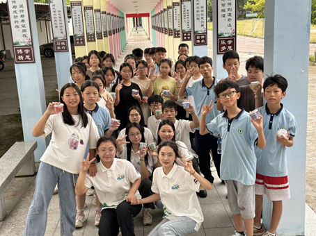 绿美青年突击队与吴川市芷寮中学学生进行“创意植物角”活动的合照