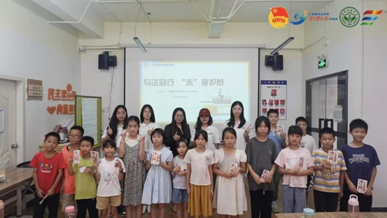 另外,突击队以《中华人民共和国刑法》《中华人民共和国未成年人保护法》为指引,开展了禁毒防毒、法律责任、防校园欺凌等主题课堂,寓教于乐,启蒙学生们的法治意识。突击队还宣传普及了《中华人民共和国农村土地承包法》《中华人民共和国民法典》《广东省土地管理条例》等多项法律法规,普及人次达300人次,累计普法时长为6小时,完成了近200份调研问卷的填写及宣传手册的发放,得到当地司法所的大力支持。