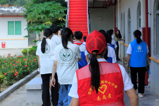 实践队成员带领学生们前往敬老院
