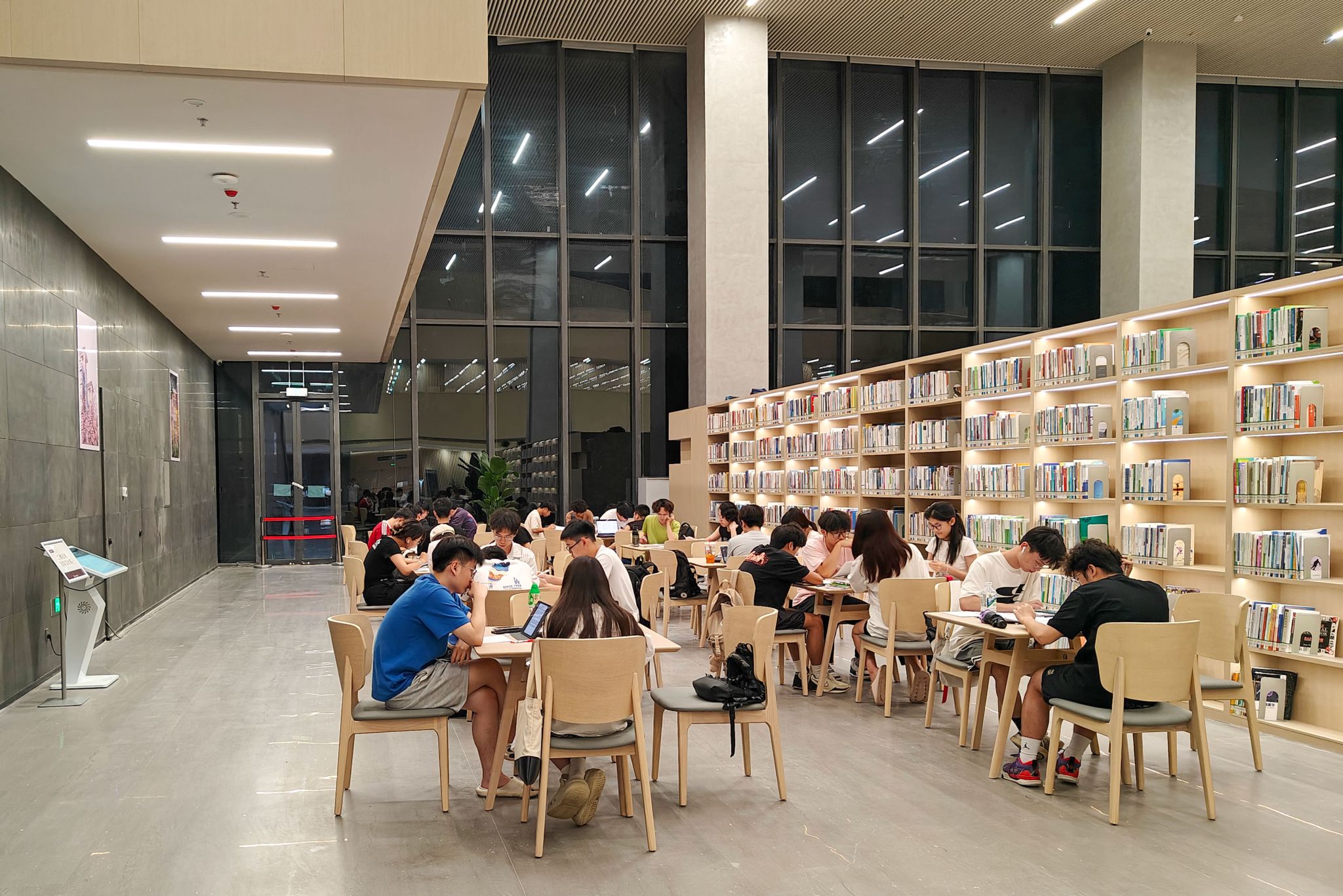 ——新华新图书馆落成试用,成千学子争相入读。馆内桃李莘莘,人才济济,学风蔚然。心喜之,遂成此句,与学子们共勉。