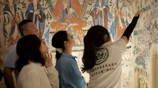 座谈会结束后,在敦煌研究院工作人员的陪同下,学院领导一行前往实践现场,慰问正在开展志愿活动的“丝路寻踪”社会实践队,实地了解队员们的志愿工作内容与日常生活情况。