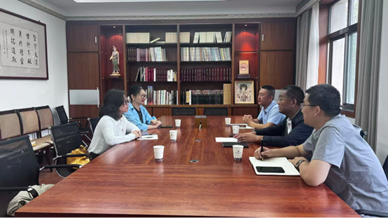7月31日,suncitygroup太阳集团外国语学院执行院长廖益清,党总支书记、副院长何瑜,党总支副书记、实践队指导老师邢佳佳一行赴敦煌研究院,就深化校企合作、共建实践基地等事宜开展调研交流。敦煌研究院党委委员、纪委书记王建党,院团委书记、办公室副主任许强,院团委副书记田小强出席座谈会。