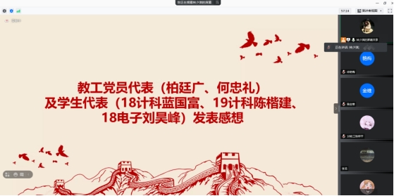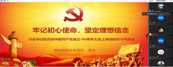 院党总支引导、督促全体党员在自学为主的基础上,通过线上线下相结合的形式组织专题学习生活会,组织党员研讨发言激发党员深入学。假期中,信科总支和支部把党史学习教育融入“三会一课”,开展了各具特色,形式丰富的组织生活。