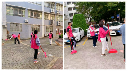 志愿者们分工合作、积极投入,发扬不怕苦不怕脏的精神,对广州校区教学楼周边区域进行清理。师生在教学楼的各个区域进行全面认真地清洁打扫,不留死角,并按照垃圾分类的原则,将落叶集中处理。