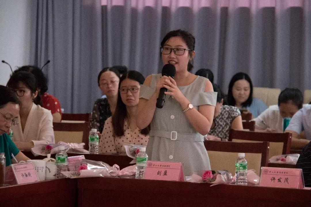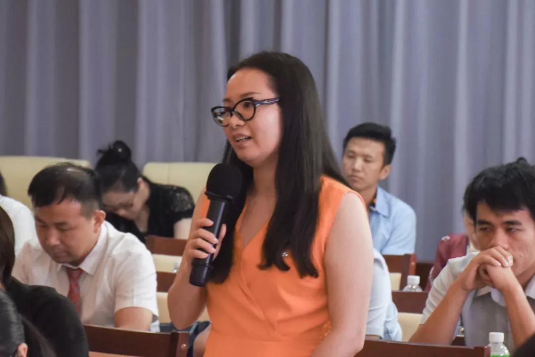 经济与贸易学院梁丹老师发言。她作为新入职的教师,阐述了如何开展工作和融入教师队伍的问题,表示在保证教学质量的基础上,更着重培养学生多元价值观和视角、应对实际问题的综合协调能力。