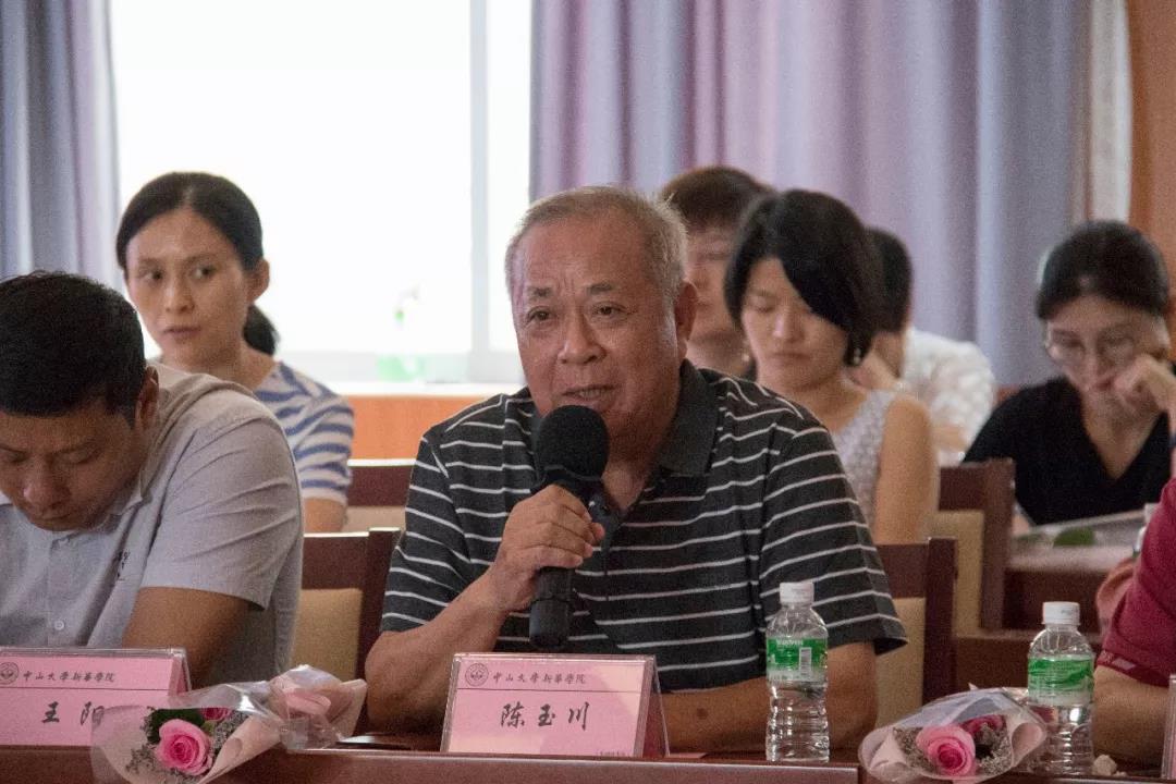 教学督导陈玉川教授发言。他用自己的从业经历和感人故事回答了教师应该要懂得什么,怎样教好学生等问题,并表示愿意为学校的发展多做一些贡献。