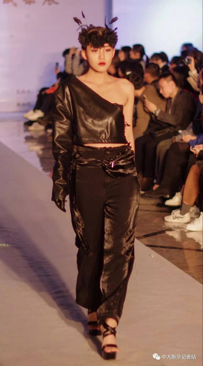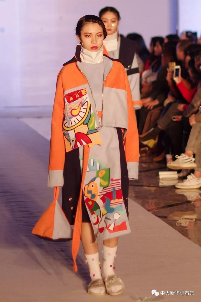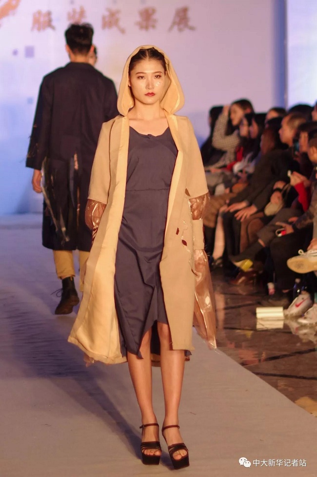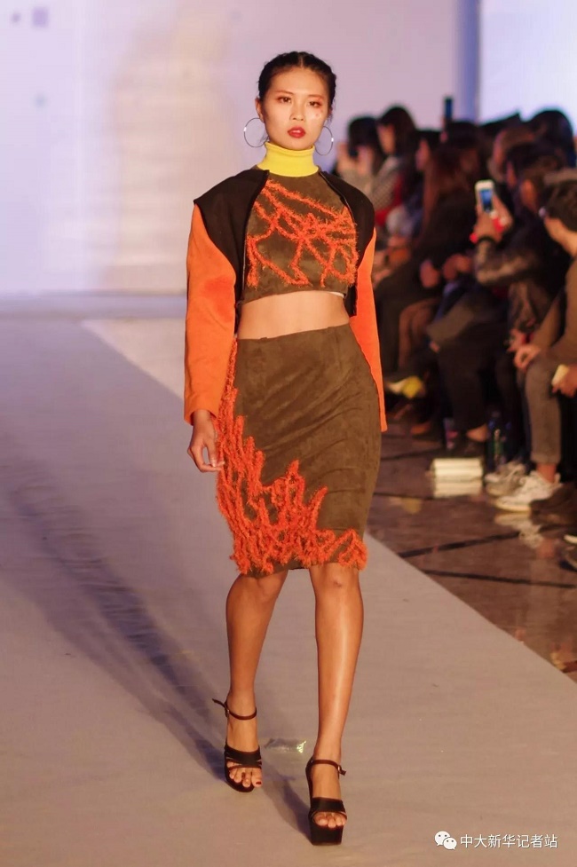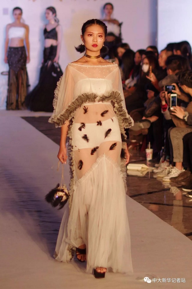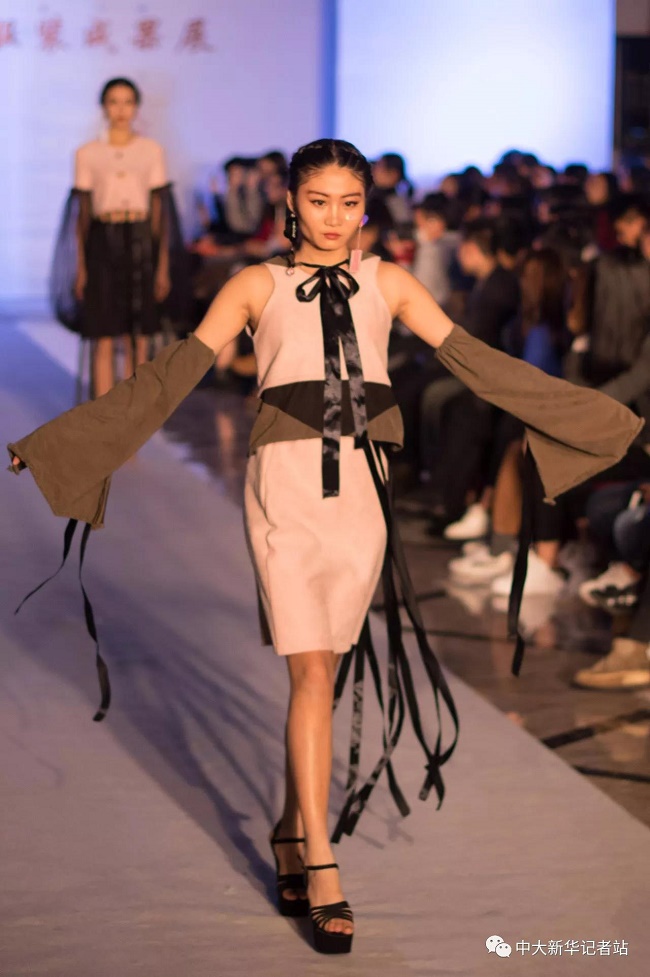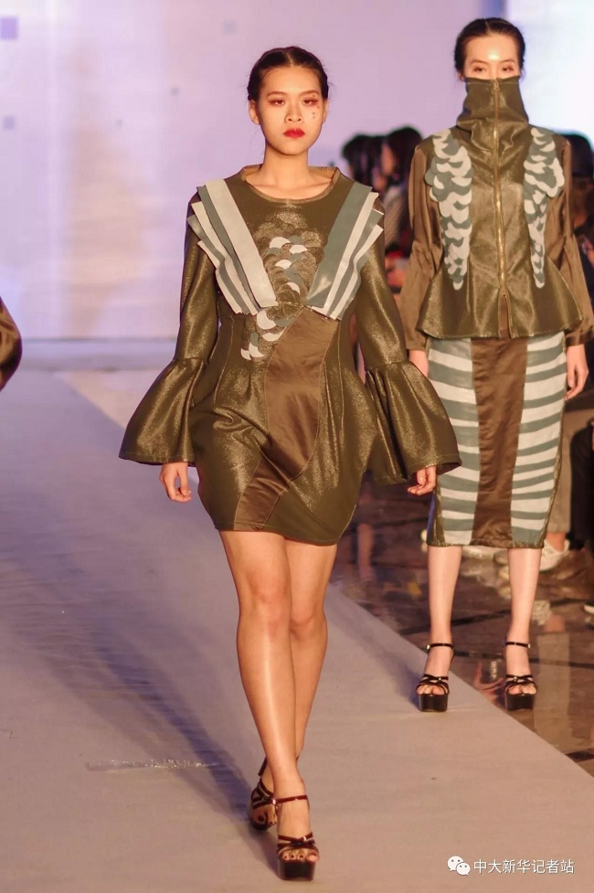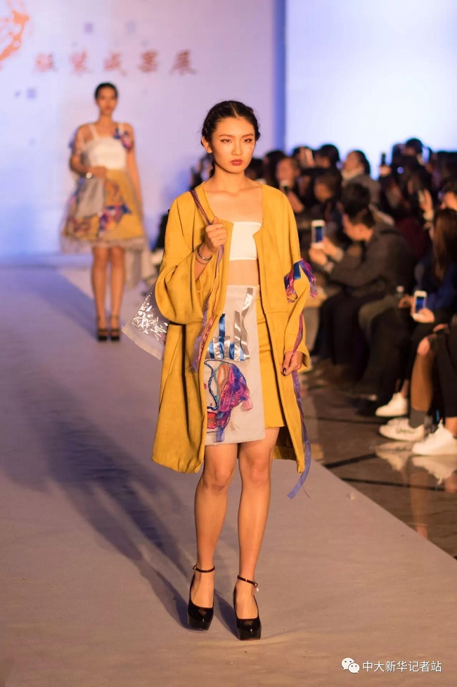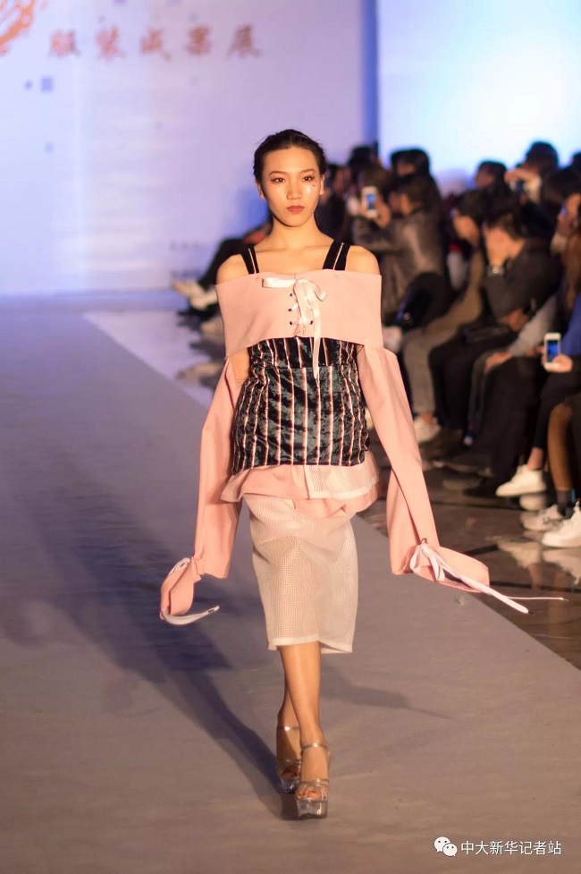 12月20日晚,由中山大学新华学院艺术与传媒学院主办,中山大学新华学院服装协会承办的2017服饰采风成果展在龙湖大酒店盛大举行。本次出展的服装,由学生自行创作设计。置身偌大的舞台,学生模特们穿戴精致的服装,配以精致的妆容,在灯光的渲染下,携带着自信走来。58名设计师所设计的27个系列的服饰个性鲜明、剪裁独特、独具匠心。