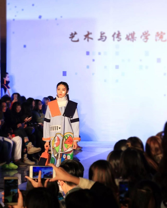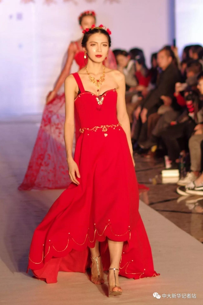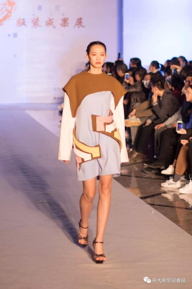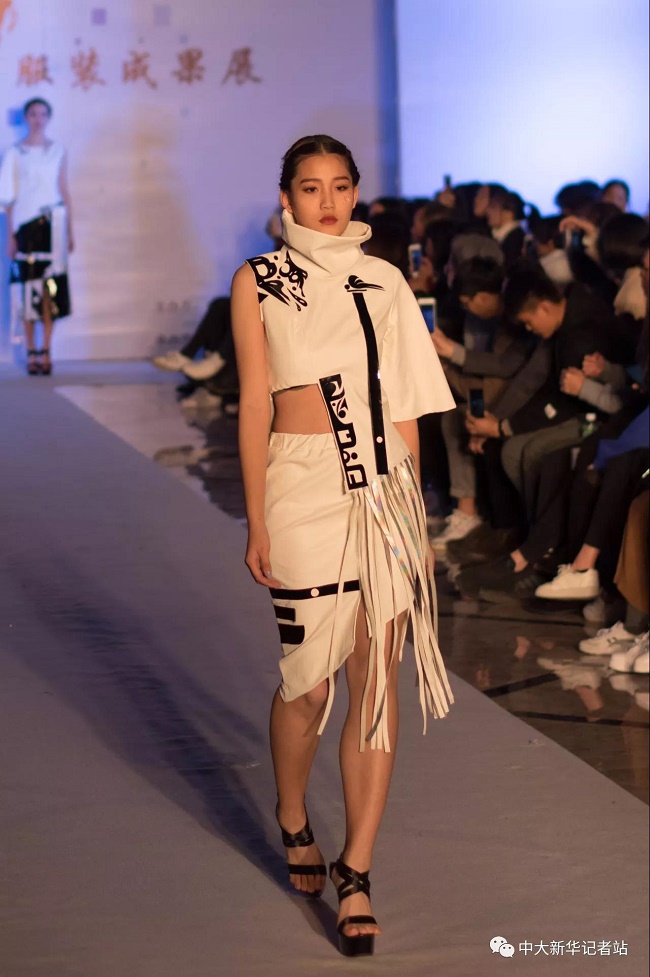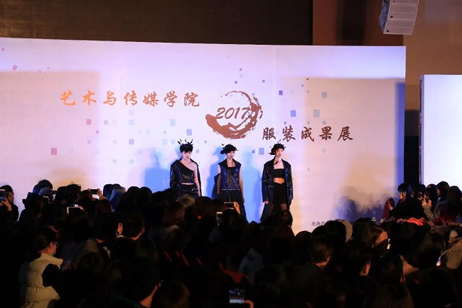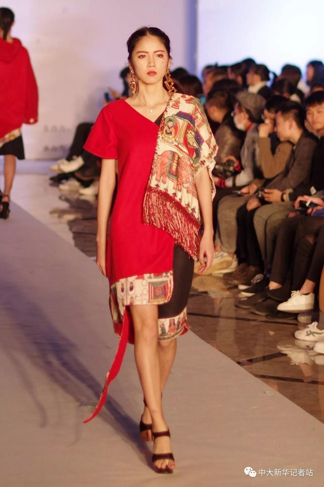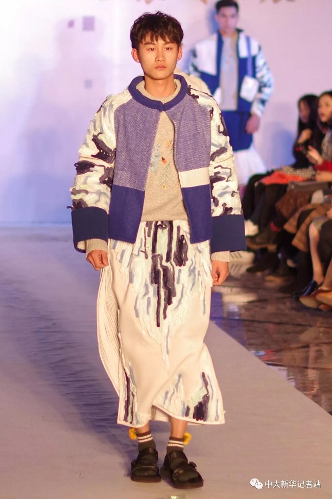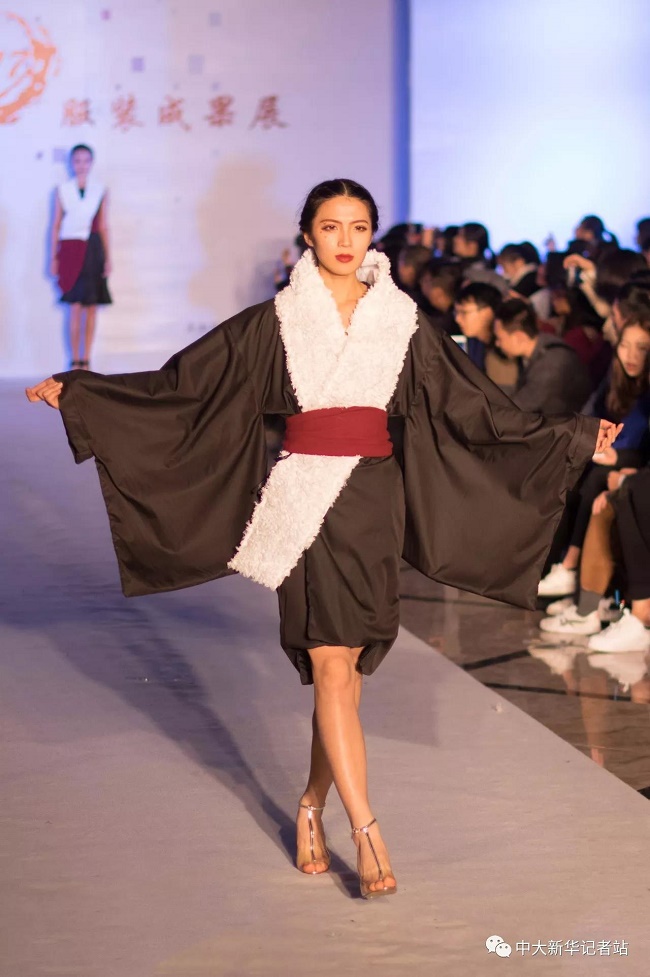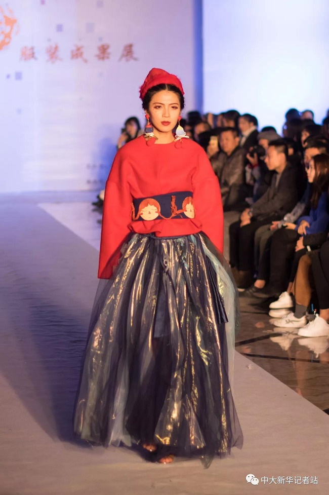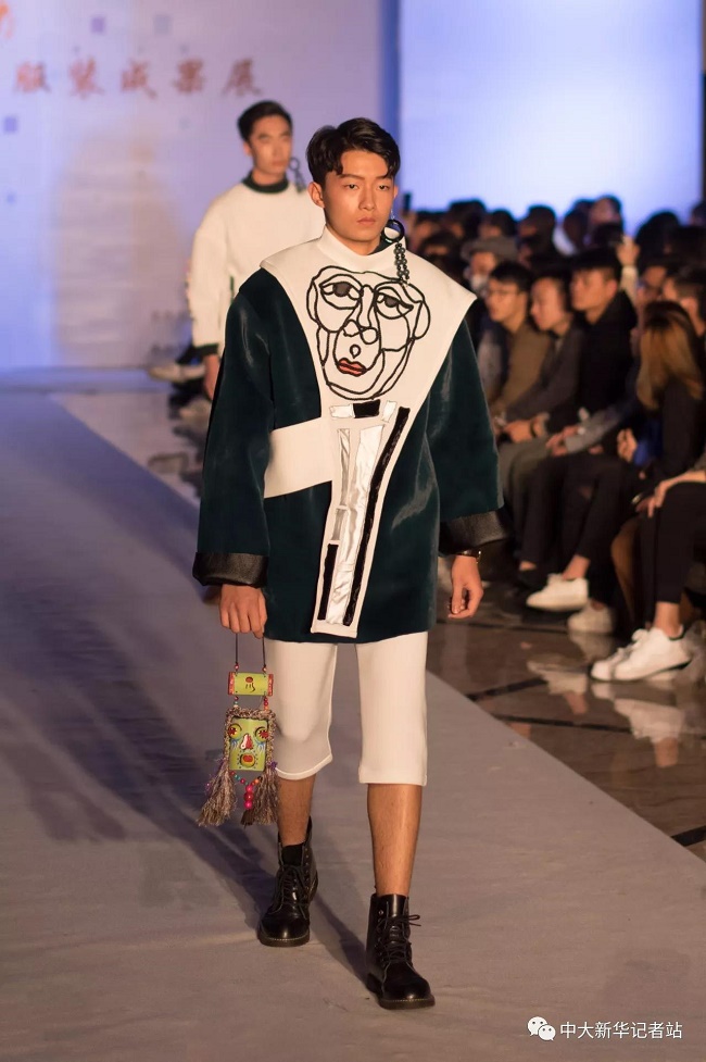 12月20日晚,由中山大学新华学院艺术与传媒学院主办,中山大学新华学院服装协会承办的2017服饰采风成果展在龙湖大酒店盛大举行。本次出展的服装,由学生自行创作设计。置身偌大的舞台,学生模特们穿戴精致的服装,配以精致的妆容,在灯光的渲染下,携带着自信走来。58名设计师所设计的27个系列的服饰个性鲜明、剪裁独特、独具匠心。