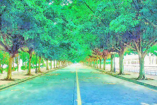 林木葱葱的校道上