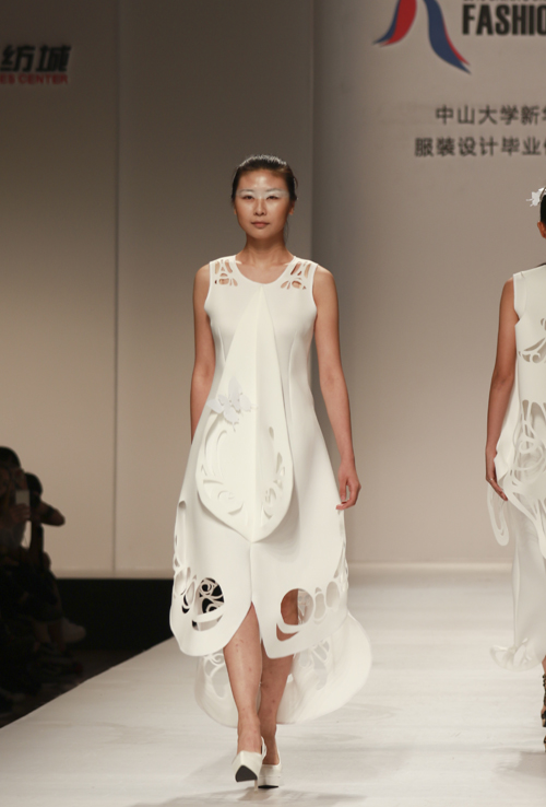 5月26日晚,适逢毕业季,中山大学新华学院2012级服装设计毕业作品展演在广州国际轻纺城圆满 落幕。本次展演共展出29名设计师的24个系列125件优秀毕业设计作品,其中刘洁聪、杨白桂、辛琪 、邱斯涵设计师作品进入前三强,赢得2016中国(广东)大学生优秀服装设计大赛总决赛入场券。