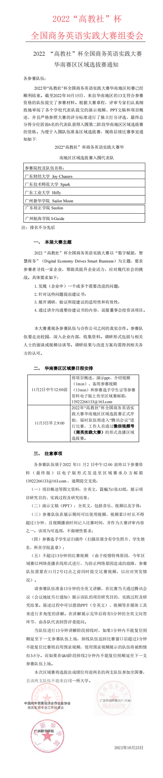 2022 “高教社”杯全国商务英语实践大赛华南赛区区域选拔赛通知