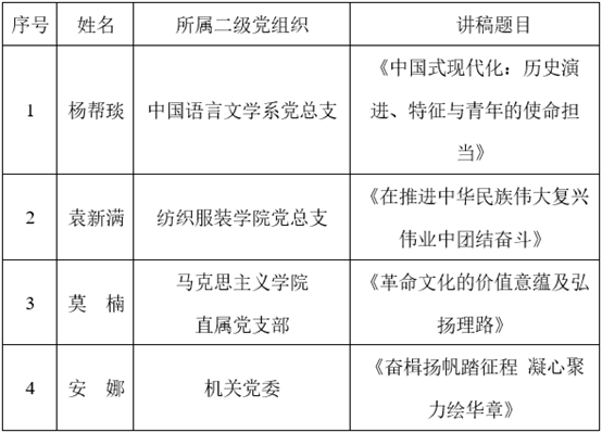 近日,党委宣传部(新闻中心)依据学校《党的二十大精神“八个一百”宣讲行动实施方案》(广新党发〔2022〕88号),本着公平公开公正的原则,组织评委专家评选出18名校级优秀宣讲员和4篇优秀讲稿,现将名单公布如下:
