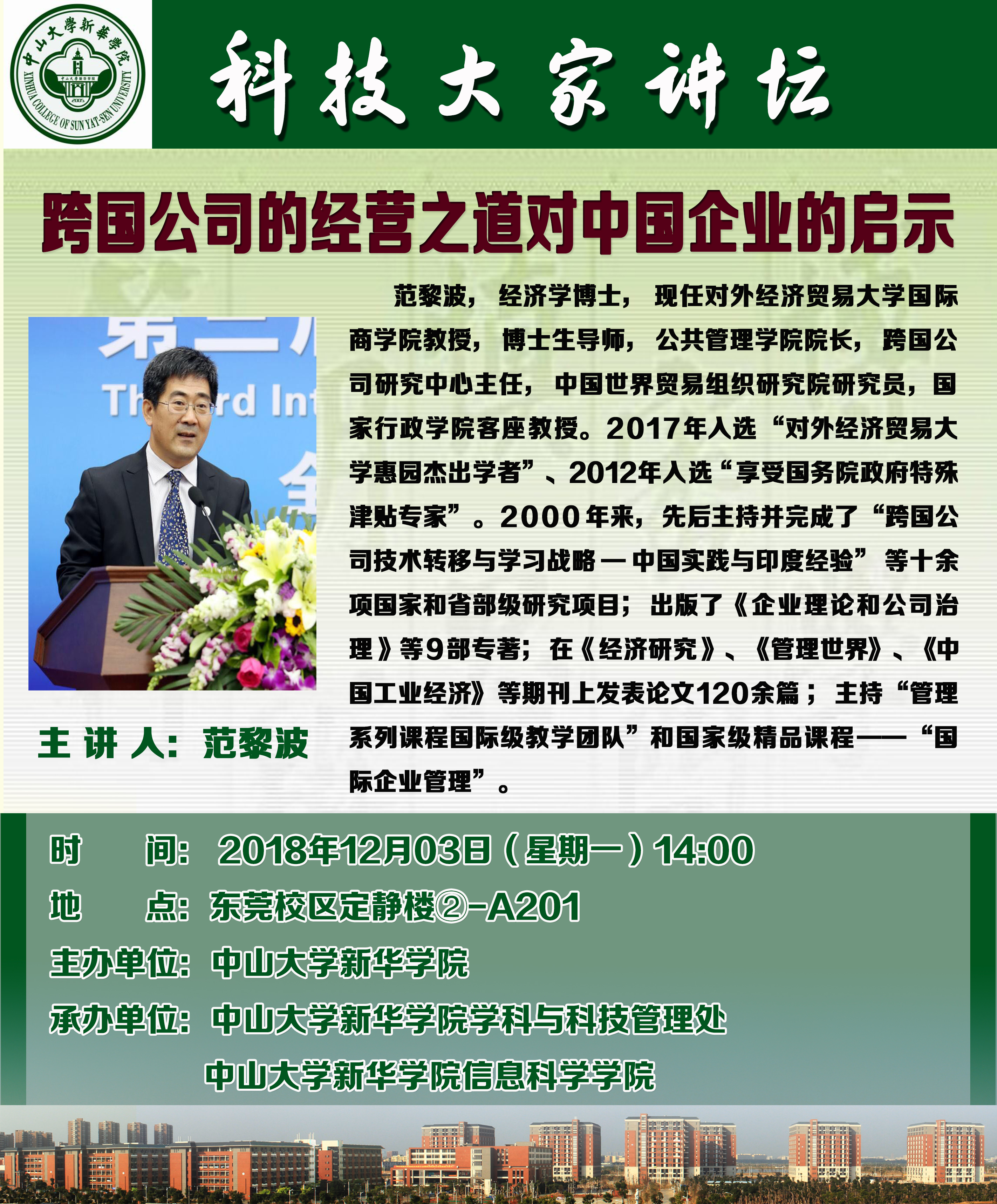 讲座时间:2018年12月03日(星期一)14:00