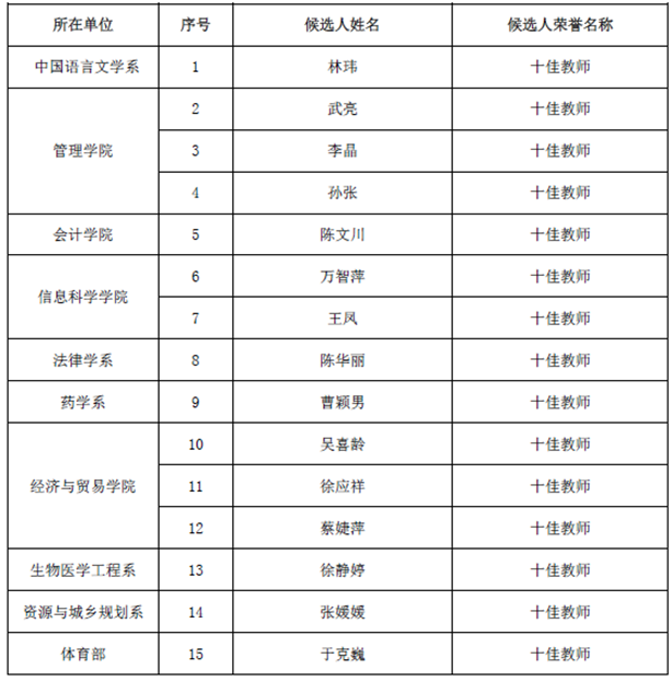 中山大学新华学院2017年十佳教师候选人名单