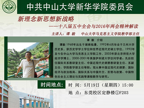 讲座题目:新理念新思想新战略——党的十八届五中全会与2016年两会精神解读