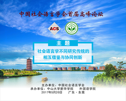 由中国社会语言学会主办、中山大学新华学院外国语学院承办的中国社会语言学会首届高峰论坛于2017年5月19日至5月21日在中山大学新华学院东莞校区举办。中国社会语言学会由汉语、外语、对外汉语教学以及少数民族语言研究领域从事社会语言学研究的学者组成,宗旨是组织开展关于海内外华人、中国各民族语言、世界各民族语言的社会语言学研究。该学会特别关注语言教育相关问题,如语言规划与语言调查、语言变化以及其他社会语言学的理论与实际问题,以促进国民对语言教育的内涵、功能和历史认识,为提高国家国民语言能力献计献策。学会自成立以来,每两年组织一次全国性的社会语言学会议。学会主办有会刊《中国社会语言学》,由商务印书馆出版,每年两期,中国知网全文收录。本次高峰论坛旨在探索语言教学的新途径,保护民族语言,推动汉语发展。