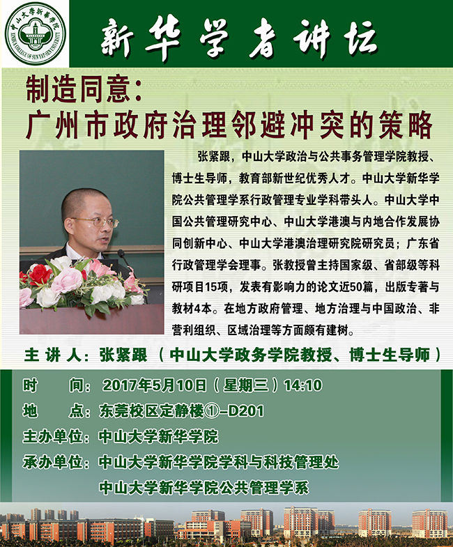 讲座题目:制造同意:广州市政府治理邻避冲突的策略