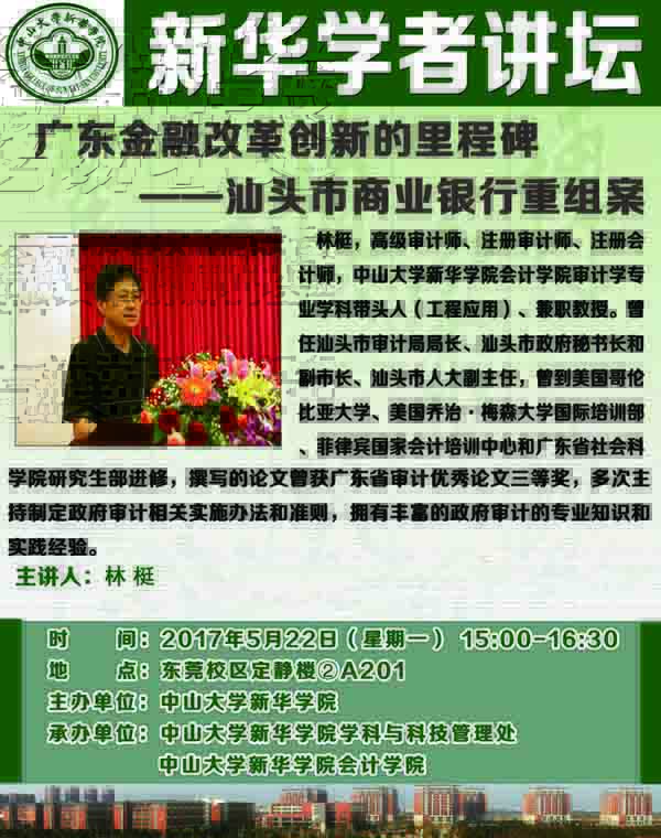 讲座题目:广东金融改革创新的里程碑——汕头市商业银行重组案