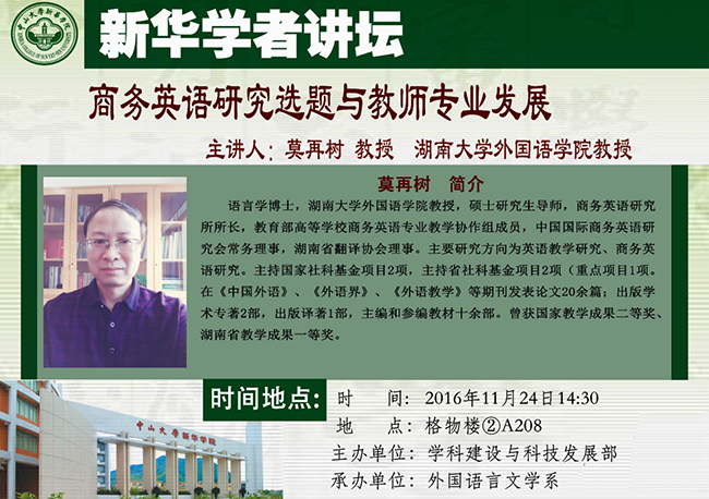 讲座主题:商务英语研究选题与教师专业发展
